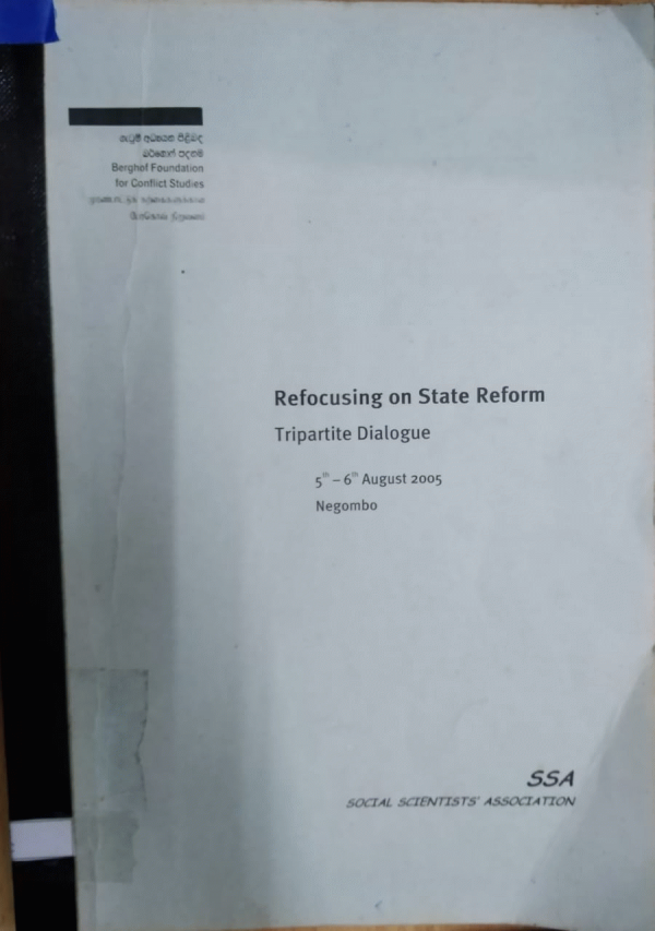 TextLanguage: English Language Series: Social Scientists Association and the Berghof Foundation For Conflict StudiesPublication details: Negombo 2005 Social Scientists' Association Description: vi,130 pISBN: - Not given