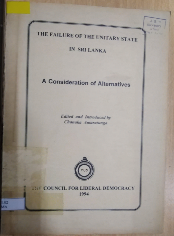 The failure of the unity state in Sri Lanka a consideration of alternatives