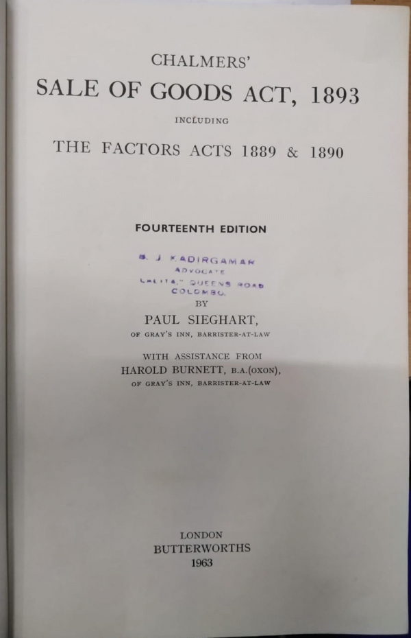Chalmers' Sale of Goods Act, 1893 Including the Factors Acts 1889 & 1890