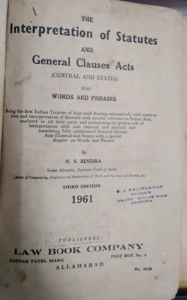 Publication details: Colombo Bar Association 1993