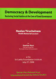 Democracy & Development Restoring Social Justice at the Core of Good Governance/Neelan Tiruchelvam Ninth Memorial Lecture