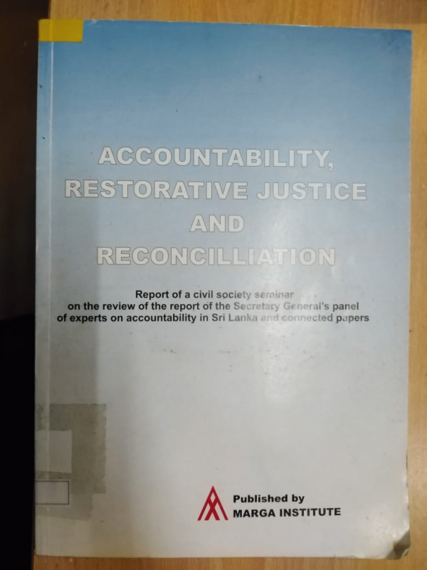 Accountability, Restorative Justice And Reconciliation Report of a civil Society Seminar on the review of the report of the UN secretary general's panel of experts on accountability in Sri Lanka and connected papers