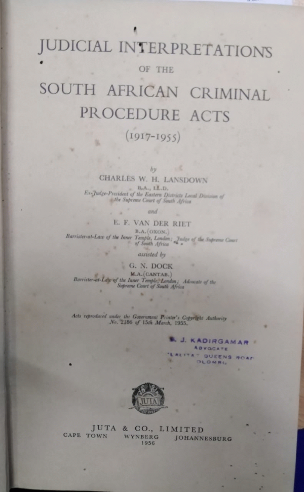 Judicial Interpretation Of The South African Criminal Procedure Acts 1917 - 1955