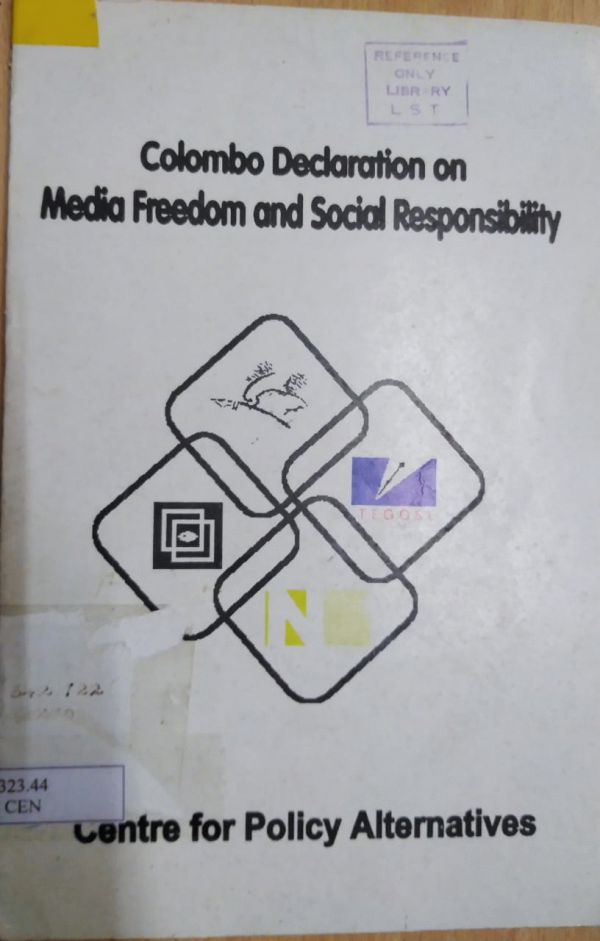 Language: English Language Publication details: Colombo Centre for Policy AlternativesDescription: 10 pISBN:- 9558037028
