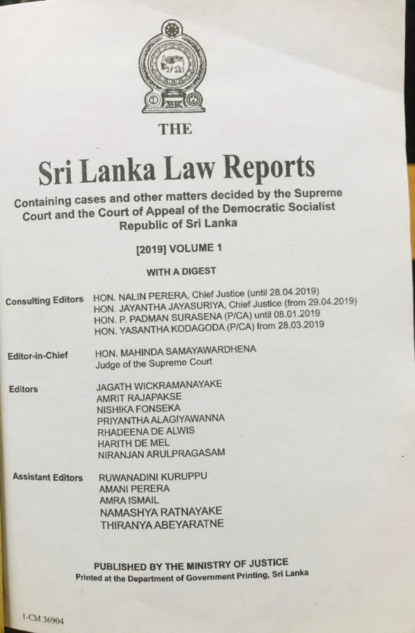 Sri Lanka Law Reports 2019, Volume 1 by