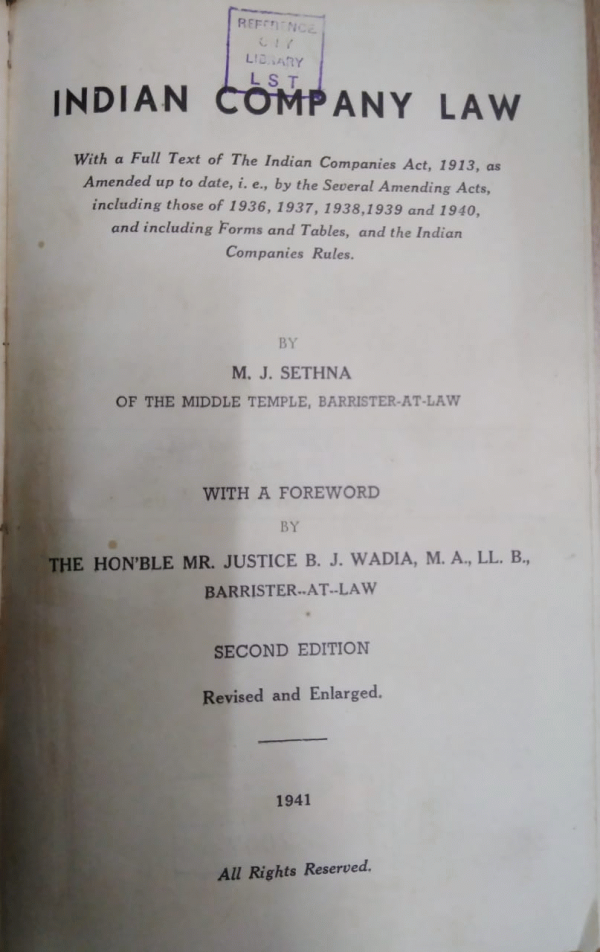 Publication details: Bombay M J Sethna 1941